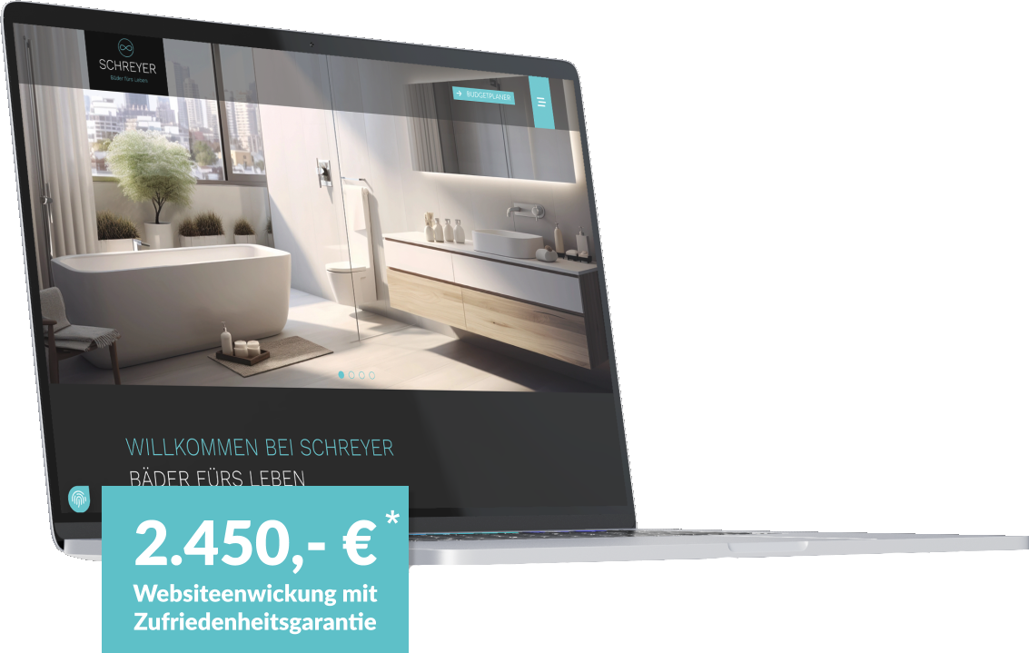 Zzgl. 99,- € / netto im Monat für Angebotsmappe, Budgetplaner, Referenzen, Hosting und Website-Wartung.